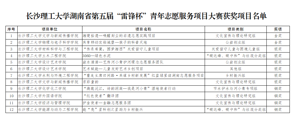 本次大赛以“喜迎二十大、永远跟党走、奋进新征程”为主题,设置14个参赛组别,从全省1200余个项目中,遴选出120个志愿服务项目进入决赛。最终,开云官网取得“两金六银四铜”的优异成绩,并获得“优秀组织奖”,获奖项目总数居全省高校首位。其中,共享移动实验城堡—孩子的科普天地、湘楚拾遗—唤醒封尘的非遗志愿实践项目2个项目荣获金奖;“重走主席田间路·共谋乡村新发展”红蓝绿里读湖南志愿服务项目等6个项目获得银奖;“旖旎沅江,诗韵洞庭—我是河小青”湿地使者行动等4个项目获得铜奖。