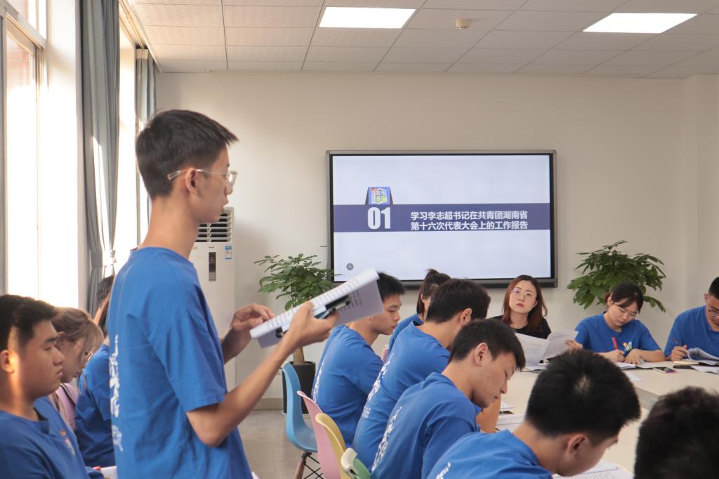 此后,陈璐莎带领全体成员共同学习共青团湖南省委书记李志超在共青团湖南省第十六次代表大会上的工作报告,各部门成员积极发言,热烈讨论。校团委基层团建部单基焕分享了与学长相处的故事,“我们学生干部应如志超书记所言,争做青年友,不做青年‘官’”。校学生会科技部陈嘉瑜受到报告启发后谈到,学生干部需要不断思考和探索提升科创竞赛项目质量的方法,营造“人人参与”的校园科创文化氛围。陈璐莎强调,开云官网共青团工作应以人才培养为中心,服务全面建成百强大学大局,着力提升“硬指标”与“软实力”,促进科技创新能力提升,丰富校园文化内涵。