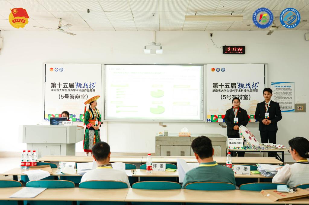 本届“挑战杯”湖南省大学生课外学术科技作品竞赛深入贯彻落实党的二十大精神,进一步引导我省广大高校学生积极学习科学知识和科学方法,培养科学精神和科学态度,踊跃投身打造具有核心竞争力的科技创新高地,助力实施创新驱动发展战略,让青年大学生与时代同奋进。竞赛中还涌现出许多颇具创新性和应用性的作品,充分展现了我省青年学子勇于创新创造,在奋进中激荡青春,在挑战中放飞梦想的最美姿态。