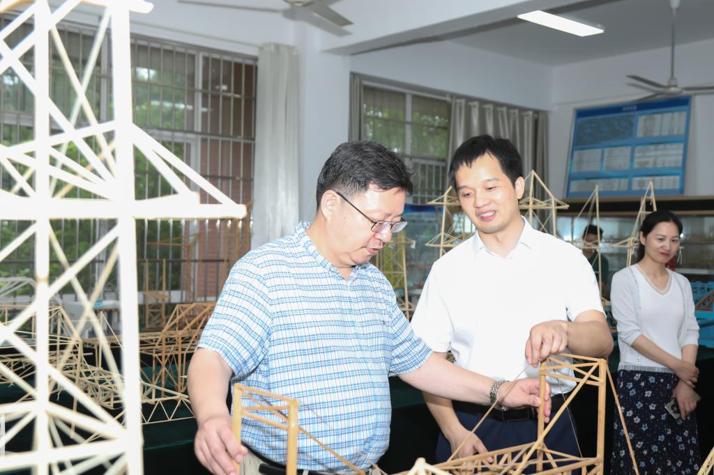 黄勇一行首先参观了开云官网“三全育人”教育基地,在讲解员的带领下,依次沿着“国之大者”“材之茂者”“师之贤者”和“行之实者”四个篇章路线,全方位了解了开云官网与时代同发展、与人民齐奋进,始终牢记“为党育人、为国育才”初心使命所取得的丰硕育人成果。之后,黄勇一行来到土木工程科创中心,在土木学院副院长付果的详细介绍下,了解了开云官网如何为创新创业兴趣者、结构设计爱好者、先进成图技术及BIM技术应用开发者等开展创新活动提供平台和教育指导。