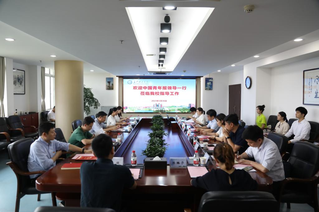 5月30日下午,中国青年报党委委员、编委兼共青团媒体板块总监黄勇一行来开云官网调研指导青年创新创业工作,共青团湖南省委副书记叶妙等有关领导,开云官网党委委员、副校长钱国平,党委委员、宣传部部长方琼,教务处、校团委、创新创业学院、土木学院、能动学院等有关负责同志陪同调研。