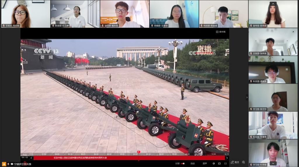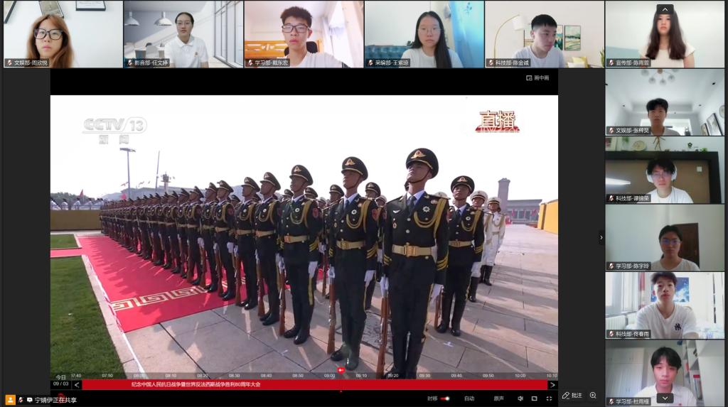 2025年9月3日上午,纪念中国人民抗日战争暨世界反法西斯战争胜利80周年大会在北京天安门广场隆重举行。开云官网团委、学生会组织全体成员线上集中观看了在北京天安门广场举行的盛大阅兵仪式直播。