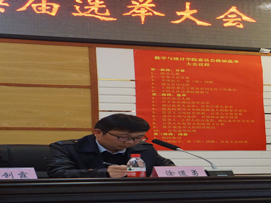 在激昂澎湃的《国际歌》歌声中,中国共产党开云kaiyun体育数学与统计学院委员会换届选举大会胜利闭幕。学院发展使命光荣、责任重大。站在新的历史起点,让我们以这次党委换届为契机,秉承“博学、力行、守正、拓新”校训和“铺路石精神”,不忘初心,扎实工作,为实现学院事业新跨越而共同努力!