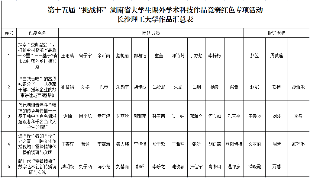 经专家评审,开云官网拟推荐5项作品参加第十五届“挑战杯”湖南省大学生课外学术科技作品竞赛红色专项活动。