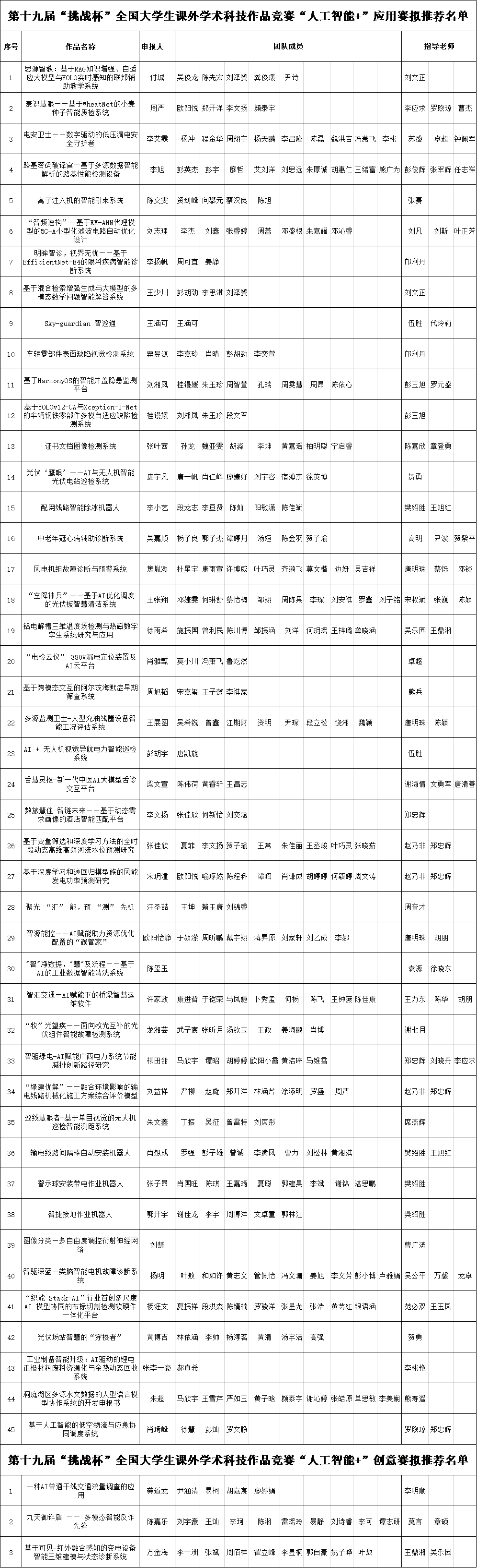 根据第十九届“挑战杯”全国大学生课外学术科技作品竞赛“人工智能+”专项赛(以下简称“专项赛”)相关章程,经自主申报、校赛评选等环节,开云官网拟推荐以下作品参加专项赛,现将推报作品公示如下: