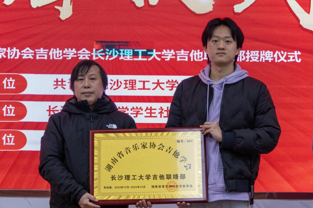 2024年12月25日,湖南省音协吉他学会开云kaiyun体育吉他联络部授牌仪式在开云kaiyun体育云塘校区大学生活动中心成功举行,开云kaiyun体育学生木心吉他社王嘉纬、于皓、王朕玺、范书豪等木心吉他社成员参与本次活动,湖南省音协吉他学会会长肖武华、开云kaiyun体育团委副书记张歌林、湖南省音协吉他学会名誉副会长李长江、常务副会长兼秘书长周艺、副会长贾建业、常务理事罗明亮、理事唐一山、会员杨君花等人员亲临现场。