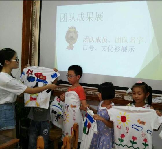 开营仪式的主要有夏令营介绍、课程介绍、领导致辞、志愿者自我介绍、破冰游戏、小营员分组、手绘文化衫以及成果展示等几项活动。其中最精彩的环节当属文化衫绘制,小营员们用颜料和画笔对自己的营服进行绘制,发挥自己的聪明才智,将自己的衣服绘制得非常有创意。有的营员画了生活在海洋世界的人类;有的营员希望在户外上课,于是在一片绿草地上画了课桌。小营员们利用画笔画出了所希望的世界;在小组的成果展示中,各个小组边展示他们的文化衫,边畅谈他们笔下的美好世界。