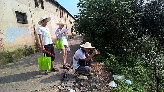 团队成员出发前往了圭塘河上游流域——洞井商贸城社区流域段。实践团对河水景观、河水中动植物生存状态、河水周围生态环境状况、污染源等调研项目进行了详细地调研。
