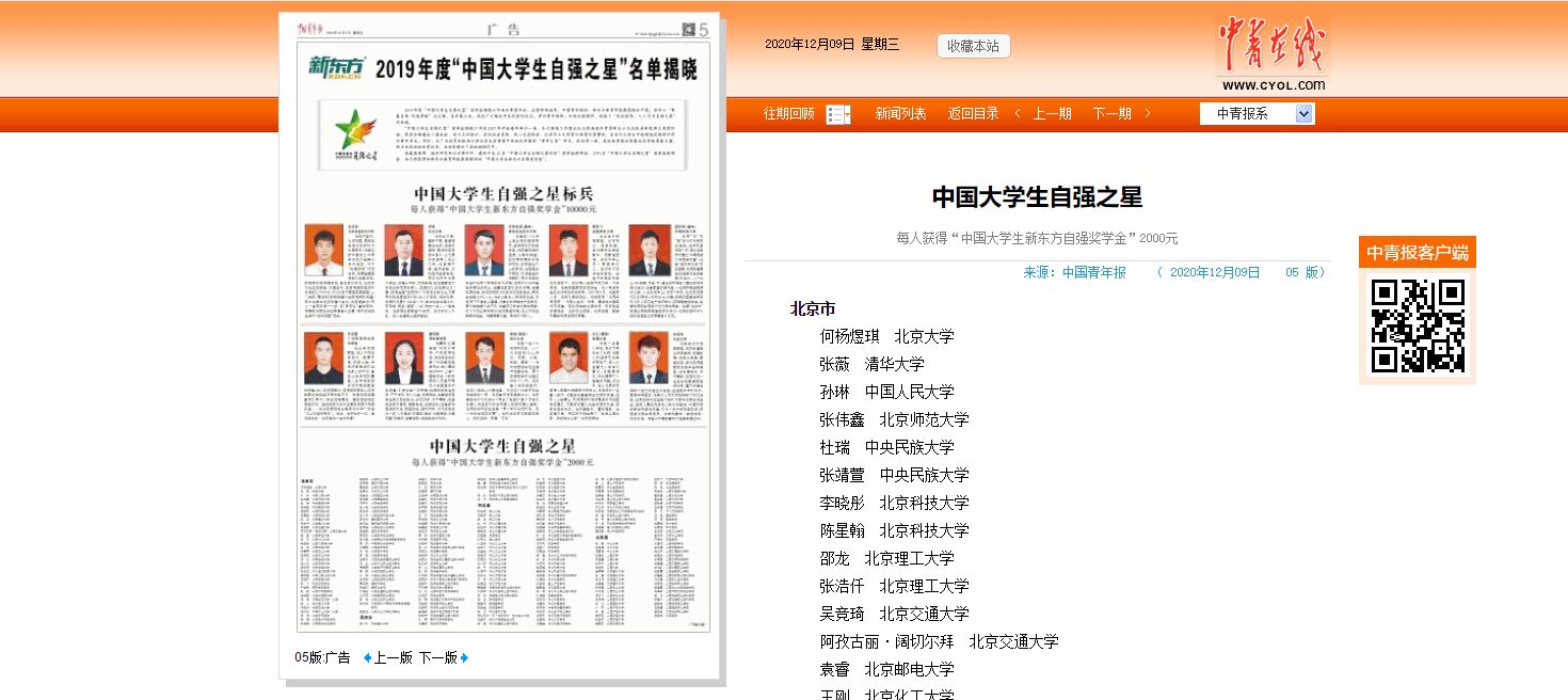 12月9日,由共青团中央、全国学联主办,中国青年报社、新东方教育科技集团联合开展的2019年度“中国大学生自强之星”评选活动结果揭晓,开云官网土木学院杨琪毅、艺术学院朱杰、汽机学院齐铁钧在众多学子中脱颖而出,荣获2019年度“中国大学生自强之星”。