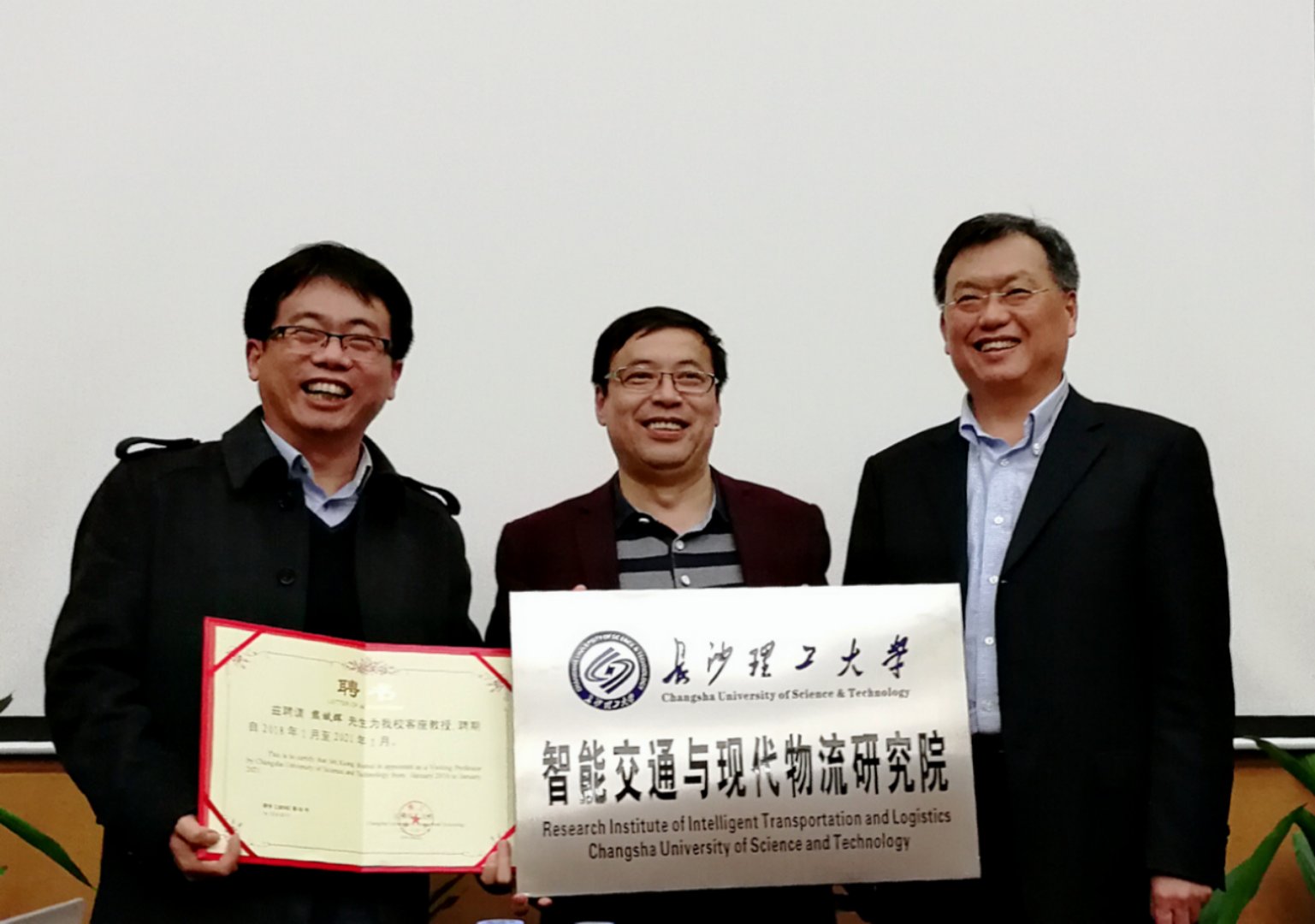会上还举行了“开云kaiyun体育智能交通与现代物流研究院”授牌仪式,谈传生为熊斌辉颁发客座教授聘书。研究院现依托开云官网交通运输工程学院,从事交通运输领域科学研究、成果转化、技术咨询和专业培训等工作。