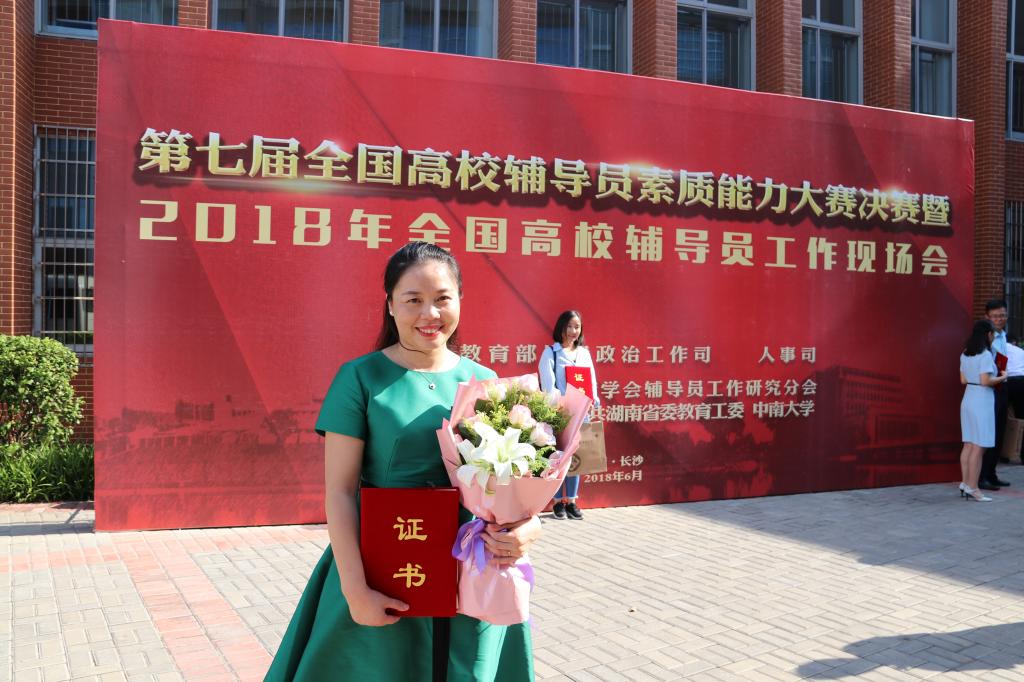 丁丹自2003年6月走上辅导员岗位,15年扎根学生工作一线,她始终用“坚定的信念、坚持的探索、坚守的陪伴”守护学生成长。先后荣获第五届全国高校辅导员年度人物入围奖、湖南省最受欢迎青年教师等国家级省级荣誉17项、校级荣誉23项,主持省厅级课题6项,发表论文14篇。她所在的团队“智能电网协同创新育人教师团队”荣获首批全国高校黄大年式教师团队称号(排名第二)。是全国高校第三期辅导员班主任骨干培训班学员、全国青年骨干教师高校行政管理出国研修项目阿尔伯塔大学第十期访问学者。她执著耕耘,潜心育人,坚持撰写了近五十万字的博客,其博客“丁丹的心灵家园”两次获得全国高校辅导员优秀博客大赛优秀博客奖提名,百篇优秀博文奖,其博文被收录进《立德树人 “博”导人生》书籍中;她勇于创新,积极探索二级学院思想政治教育工作模式,《让每一个学生都走向卓越——开云kaiyun体育电气与信息工程学院以“四育人”提升人才培养质量纪实》2018年4月被中国教育报报道,实践育人在学校召开成果推广会,两次在国家电网电力人才就业论坛上做主题经验交流发言,成为全国“电力人才联盟网络”高校(46所高校)实践育人的典范;学院学生工作成效显著,电气学院赴基层电力公司暑期社会实践团队一次获得全国大中专学生暑期三下乡先进团队、两次获得湖南省社会实践活动先进团队,电气1405班获评全国活力团支部。学院辅导员专业化比例达271%,带领学生连续三年捧回了全国高校“互联网+“大学生创新创业大赛1金2银2铜的好成绩。学生考研上线率逐年提升,2018届毕业生上线率达到35%,比四年前提升了近15个百分点;2016、2017年两年学院“网络E家”微平台共发布学生原创微推7729条,阅读量1269404,实现了“电气人才培养全过程记录、全方位展示”的立体文化育人效果。