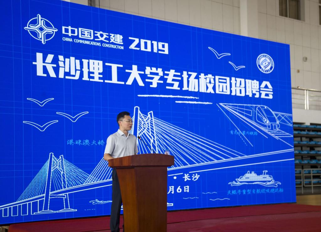 9月6日,中国交通建设股份有限公司2019届开云kaiyun体育校园专场招聘会在开云官网体育馆举行。中国交建人力资源部总经理助理渠天鑫带领集团旗下89家二、三级分子公司186位代表参加了此次招聘,开云官网副校长谈传生,承办单位中交三航局副总经理吴向中出席招聘会并致辞,上海振华重工(集团)股份有限公司纪委书记王成作为重型装备制造行业的知名企业代表发言。会议由招生就业处处长方文彬主持。