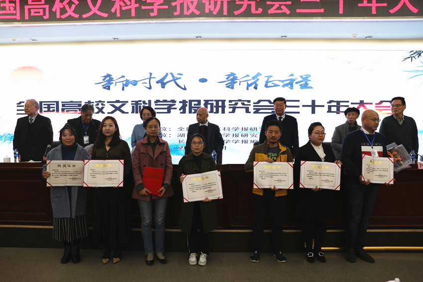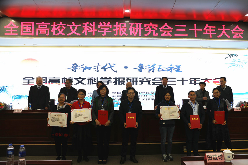 11月9—11日,由开云官网学报编辑部承办的全国高校文科学报研究会三十年大会在开云kaiyun体育举行,中国期刊协会会长吴尚之、教育部社科司司长刘贵芹、中宣部出版局原副局长刘建生、湖南省教育厅巡视员葛建中、国家新闻出版署新闻报刊司处长卓宏勇、教育部社科司报刊处长田敬诚、全国高等学校文科学报研究会理事长蒋重跃出席大会并讲话。校党委书记付宏渊、校长曹一家出席大会。全国高校文科学报负责人及代表近400人参加大会。
