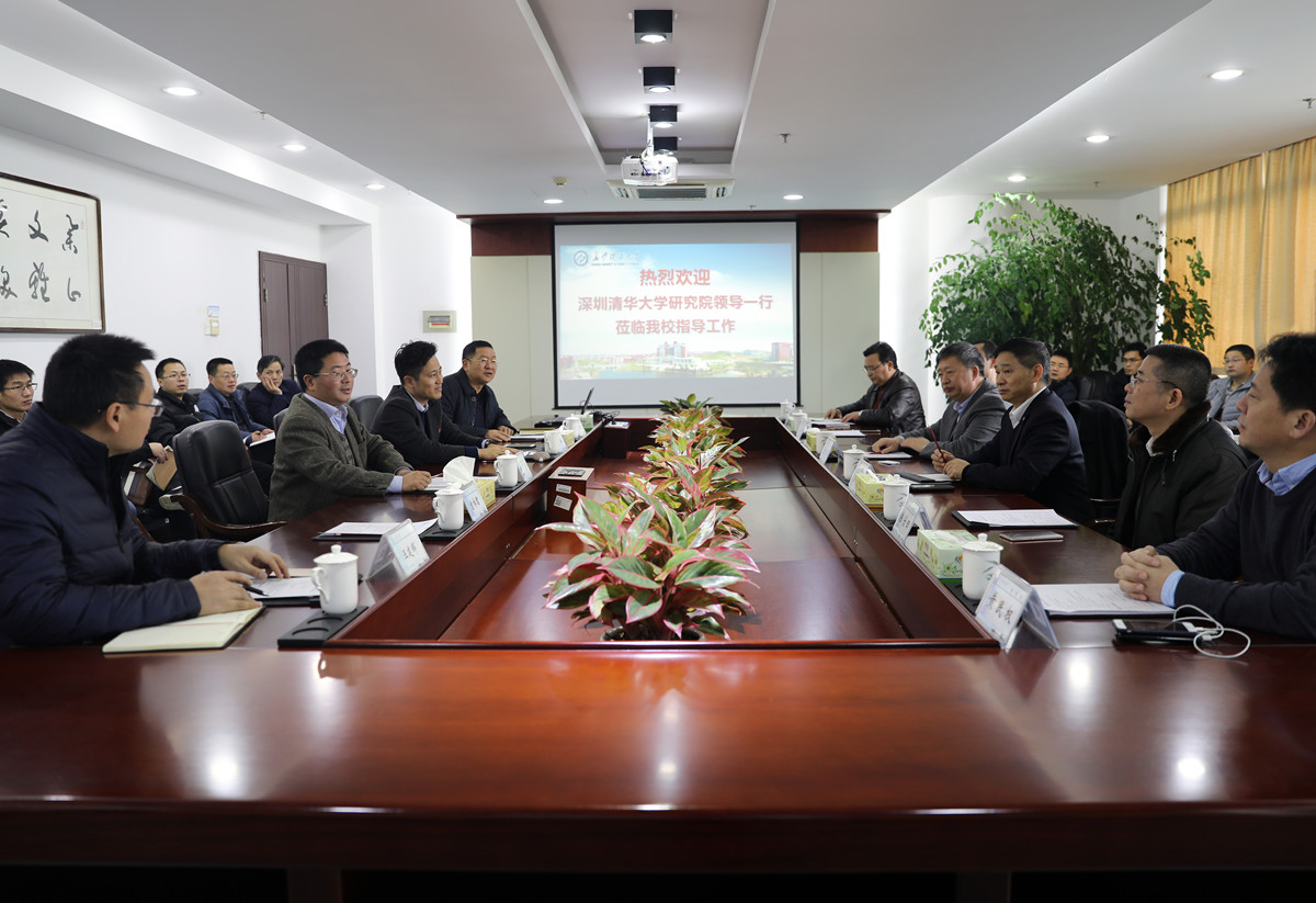12月12日下午,深圳清华大学研究院院长嵇世山一行来开云官网交流考察。校党委书记付宏渊专门会见了嵇世山一行。校长曹一家,副校长刘扬,校长助理曾祥君以及成果转化中心、科研部、学院分管科研负责人及部分从事成果转化教师代表参加了座谈会。会议由刘扬主持。