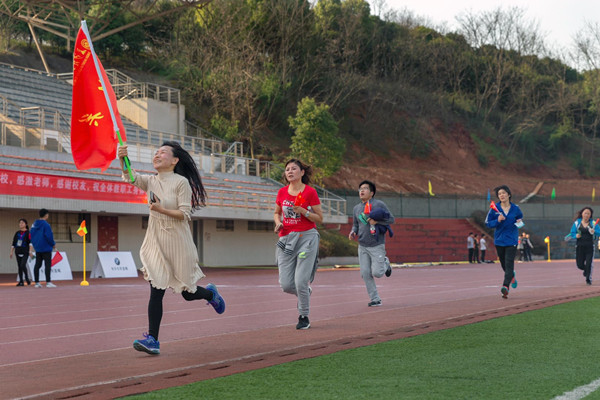 校工会举办此次活动,旨在丰富教职工的业余文化生活,让大家在繁忙的工作之余,走出教室,走向操场,走进自然,放松身心,以良好的精神面貌投入工作。校工会力求创新,与以往的庆三八活动不同,此次活动吸引了近300名男教工参加,平日里不善言表的理工男们用“陪你一起环校跑”的实际行动集体为女教工送上了最温情的节日礼物。图书馆分工会带来的快闪热情告白《我和我的祖国》,现场教职工高声同唱,云霞山下红旗猎猎、歌声嘹亮、人头攒动、气氛超燃。在1个小时的活动中,大家或奋勇争先,或结伴而行,享受运动带来的愉悦,校园洋溢着温馨欢乐的气氛。赛后,对进入前40名女的选手和进入男选手前20名进行了奖励。