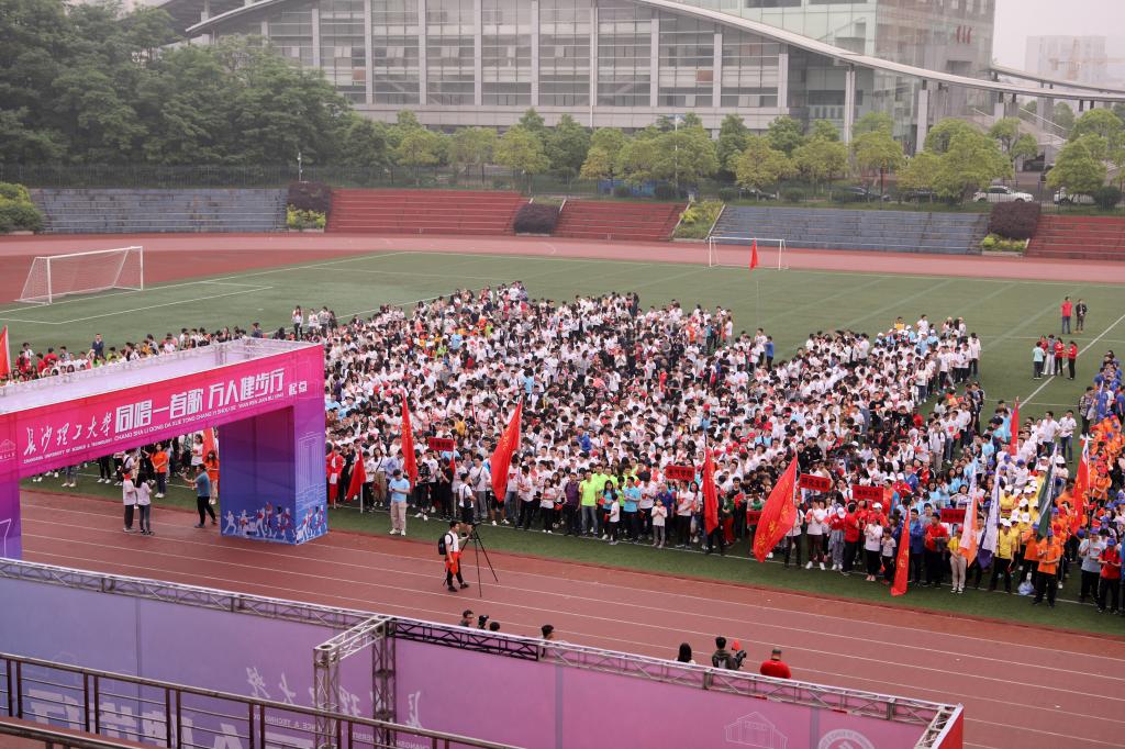 上午8时30分,云塘校区体育场上已是人头攒动、热闹非凡,来自全校各学院师生、部门职工及校友组成的24个方阵统一着装、高举队旗、整齐列队,在校友合唱团的带领下齐声歌唱《我和我的祖国》,大家脸上无不洋溢着喜悦和幸福。校长曹一家、校党委副书记邹宏如、校友总会副会长黎正稳等领导也在队伍中,挥舞国旗,与师生校友一起合唱。