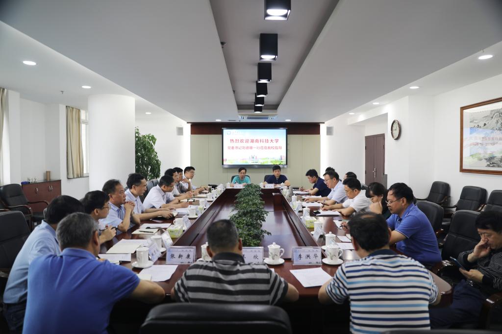刘德顺介绍了湖南科技大学的特色发展之路,并分析了学校当前所遇到的新问题新挑战。随后,双方就组织人事、专业建设、科研奖励、人才培养、财务管理等工作深入交换了意见。