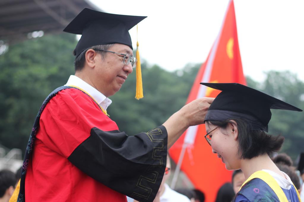 毕业典礼后,举行了学位授予仪式。校领导和导师代表们为毕业生一一颁发学位证书,并为他们正冠拨穗,学生行谢师礼。