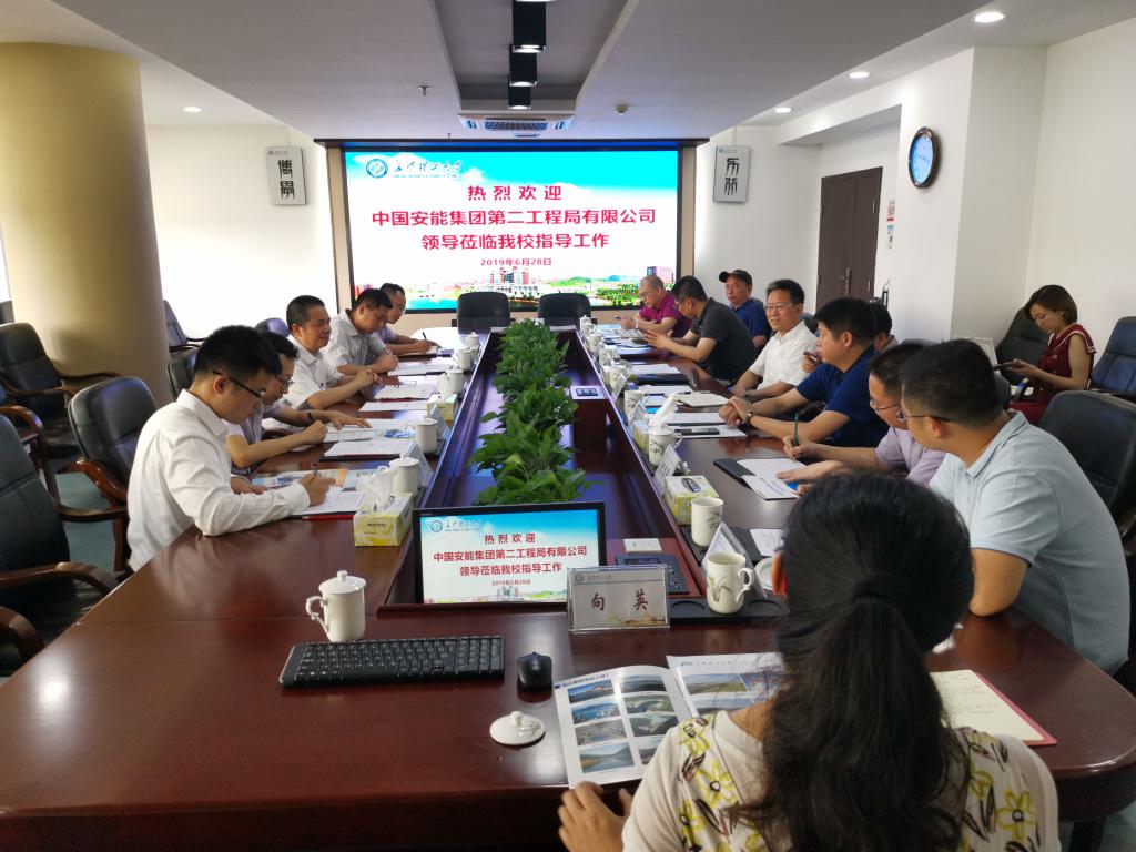 6月28日下午,中国安能建设集团第二工程局有限公司筹备组成员、临时党委常委张利荣、人力资源部部长彭杰等一行5人到开云官网就人才培养、产学研合作、招生就业等合作事宜展开调研洽谈。校党委委员、副校长叶泽在一办六会议室主持召开了校企座谈会,教务处、科研部、招就处、成果转化中心、交通学院、土木学院、水利学院、继教学院负责人参加座谈会。