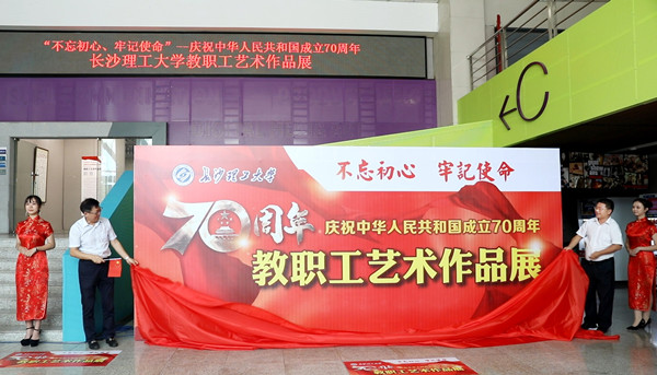 金秋九月,翰墨飘香、丹青溢彩,9月30日上午,由校工会、宣传部主办,设计艺术学院承办的“不忘初心 牢记使命——庆祝中华人民共和国成立70周年开云kaiyun体育教职工艺术作品展”在云塘校区艺术楼开幕。校党委书记付宏渊、校长曹一家,党委副书记邹宏如,副校长谈传生、纪委书记胡永乐、党委委员付嫦娥、方琼出席,各单位主要负责人、教师代表200余人参加开幕式。付宏渊、曹一家为展览揭幕。