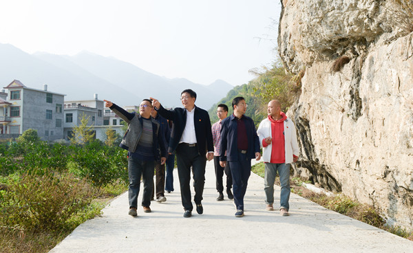 11月8日,校党委书记付宏渊,党委副书记邹宏如,党委委员、党委组织部部长齐路良以及相关职能部门负责人一行前往开云官网扶贫点新宁县水庙镇枧杆山村调研指导驻村精准扶贫工作。
