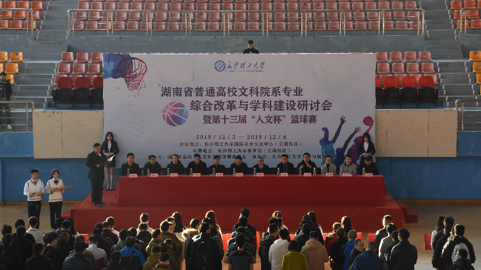 以“体”促“文”,“文”“体”交融,伴随着篮球赛的进行,6日晚举行了“湖南省普通高校文科院系专业综合改革与学科建设研讨会”,各参赛单位领导和学术骨干,以及中南大学、湖南工商大学、湖南第一师范学院等单位的代表齐聚一堂,围绕湖南高校人文社会科学专业特色、学科建设、学位点与研究生教育等方面的话题进行了深入的探讨。