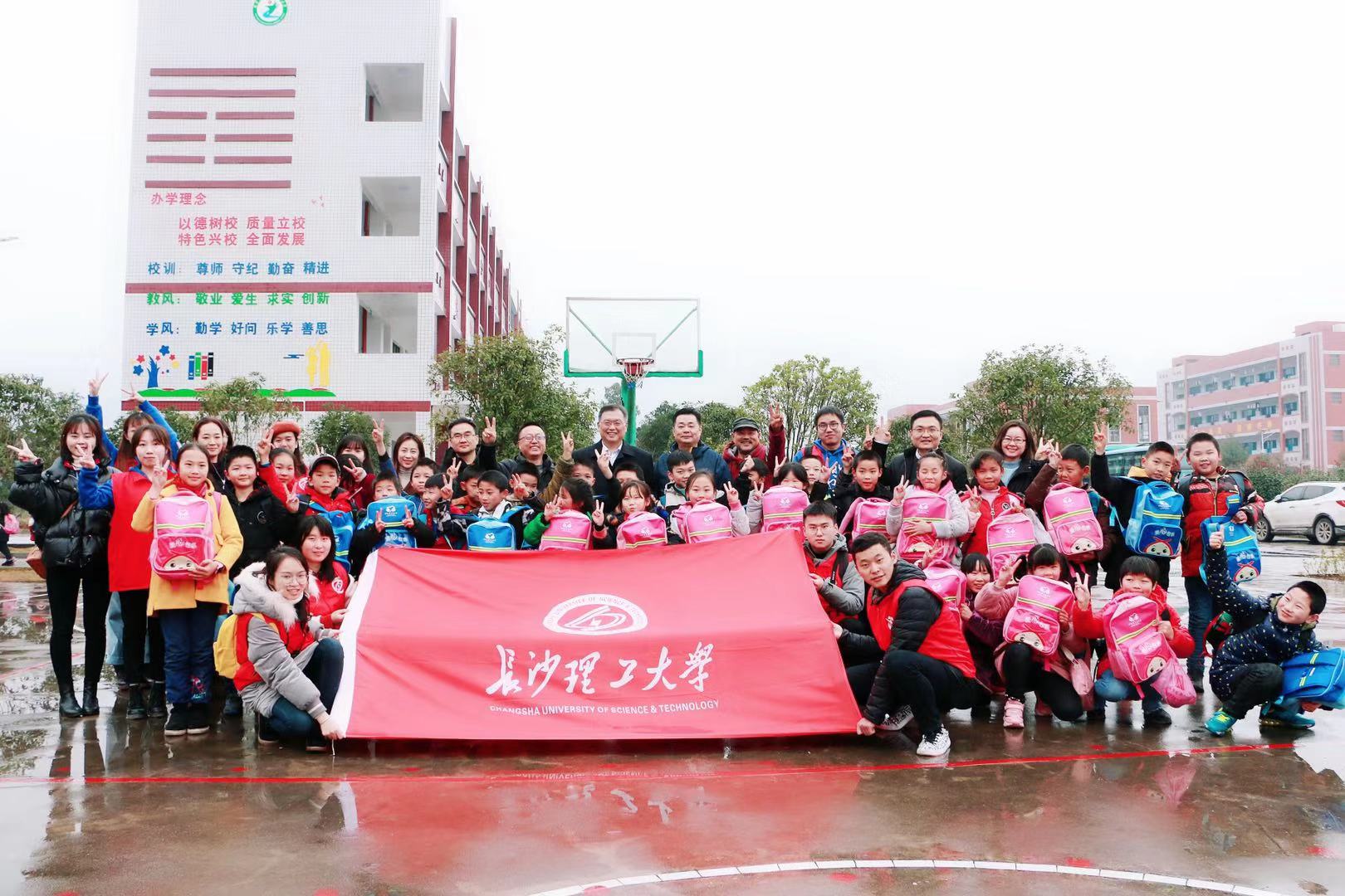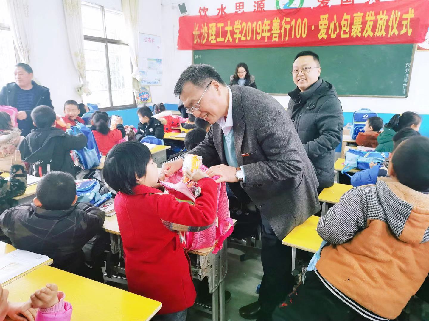 12月30日,副校长谈传生一行来到邵阳市新宁县水庙镇中心小学,为837名小孩发放爱心包裹,并带来了美术课和水资源保护课,与学校老师、当地政府等共同探讨教育扶贫实践路径。