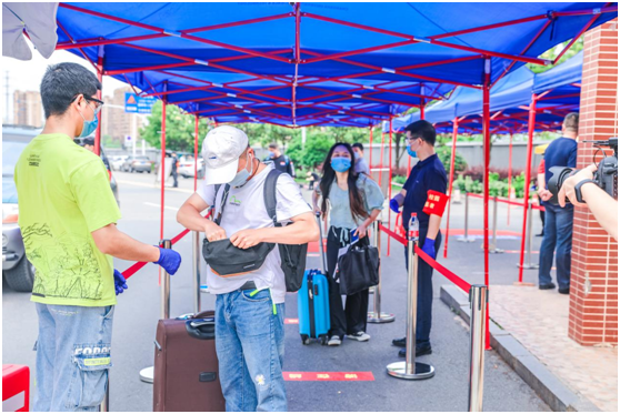 宣传部朱波涌、交通学院何其超等168名教师,从2月份开始就志愿参加了学校“战疫先锋队”,学生返校,他们又积极响应组织部“我是党员我带头”的号召,加入到学生返校管理、应急处置等工作中,为学生筑牢健康防线。20日一早他们就到达校门口,验码、测温、行李消杀,帮助大包小包的学生搬运行李。