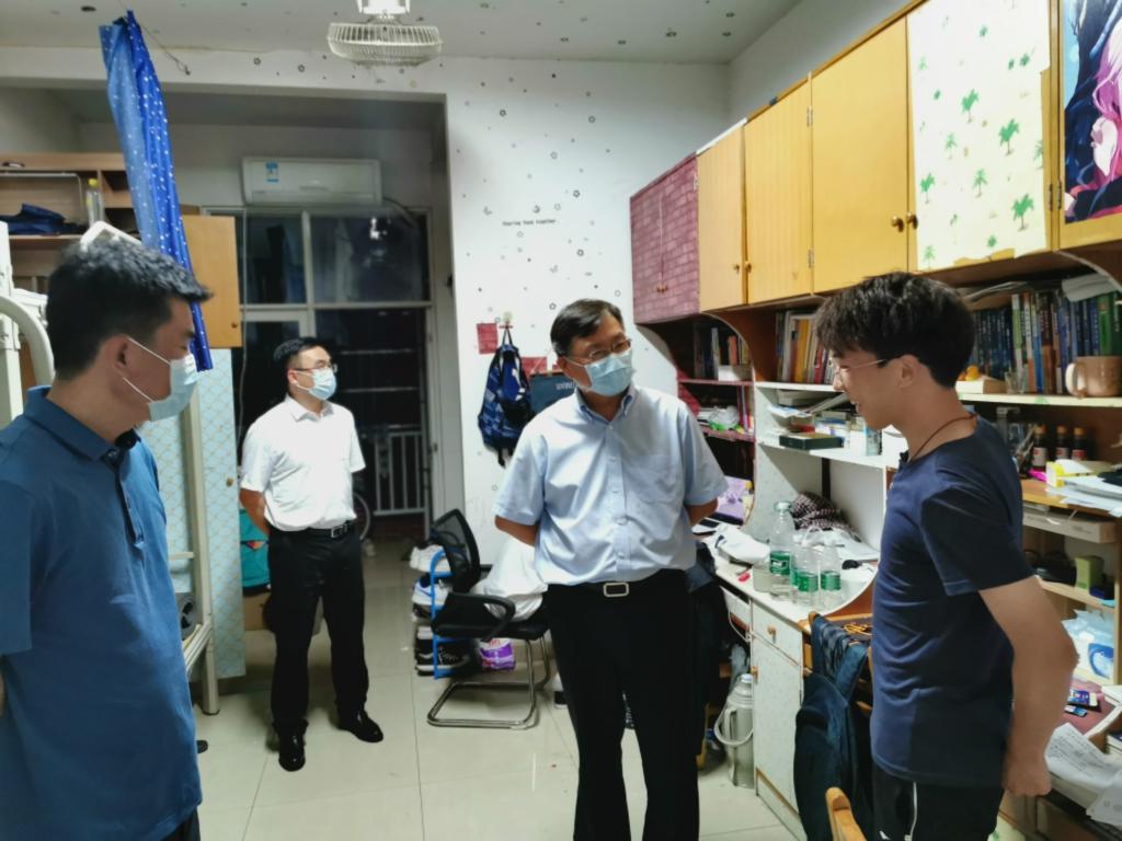 526日晚,副校长谈传生在学工部、公寓中心负责人的陪同下深入学生宿舍、图书馆,看望返校学生和晚间值班的学工干部。