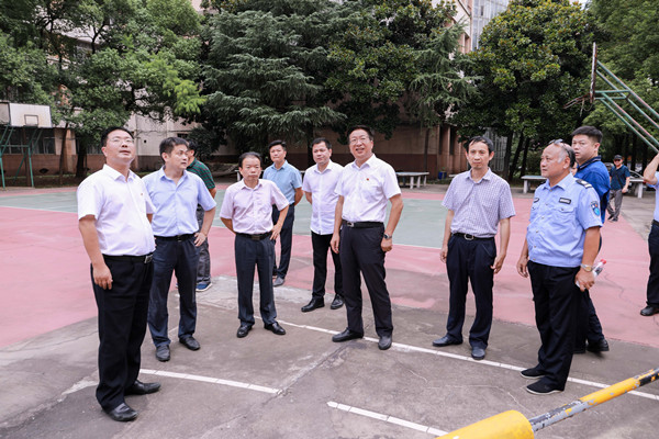 从宿舍到教室,从食堂到运动场,从路面改造到校区绿化、环境设施改造,付宏渊一行逐一进行了检查,对各部门利用暑假保质保量完成了校区改造,宿舍翻修表示肯定。付宏渊表示,今年秋季学期开学,面临众多新情况、新形势,疫情防控要常态化,教育教学工作要全面恢复,工作压力大,各部门要以高度的责任感抓好各项工作,把学生放在第一位要落实在每个细节中。