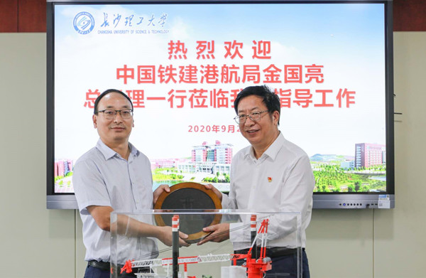 9月21日上午,85级校友、中国铁建港航局总经理金国亮一行来校,校党委书记付宏渊、副校长谈传生在一办四楼会议室会见了金国亮总经理一行。