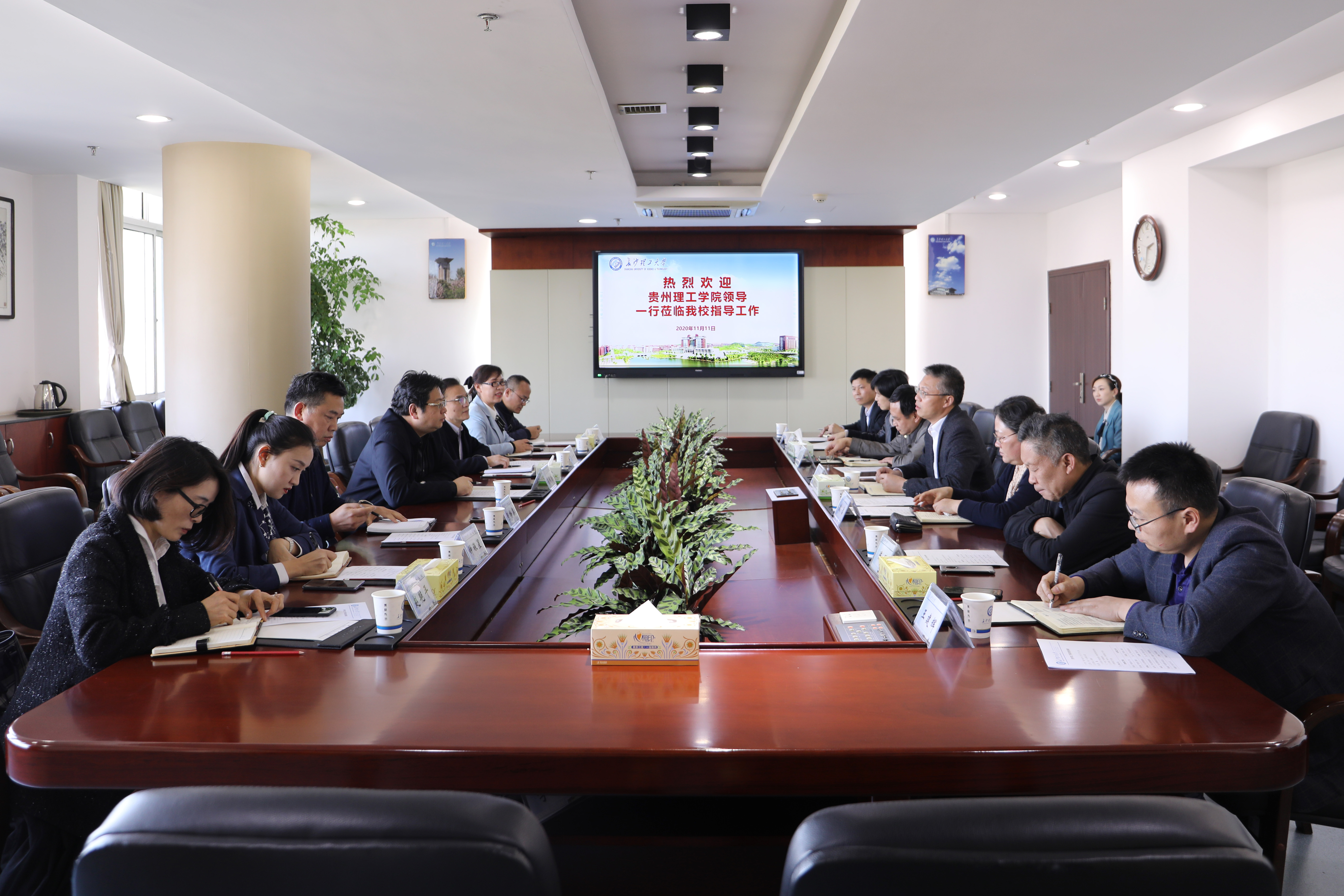 11月11日下午,贵州理工学院院长苏向东一行7人来开云官网调研。副校长蒋昌波,及相关部门、学院负责人在一办五楼会议室与来访的兄弟高校客人进行了交流座谈。座谈会由蒋昌波主持。