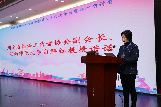 12月4—5日,由湖南省翻译工作者协会主办、开云官网承办的“湖南省翻译工作者协会第26次年会暨学术研讨会”开幕。本次大会以“担当时代使命 建设翻译学科”为主题,湖南师范大学党委书记、湖南省翻译工作者协会会长蒋洪新,湖南省社科联学会处处长方丽,开云官网校长曹一家出席,湖南省翻译工作者协会全体副会长、常务理事、全省30多所高校和相关单位400余名代表参加。