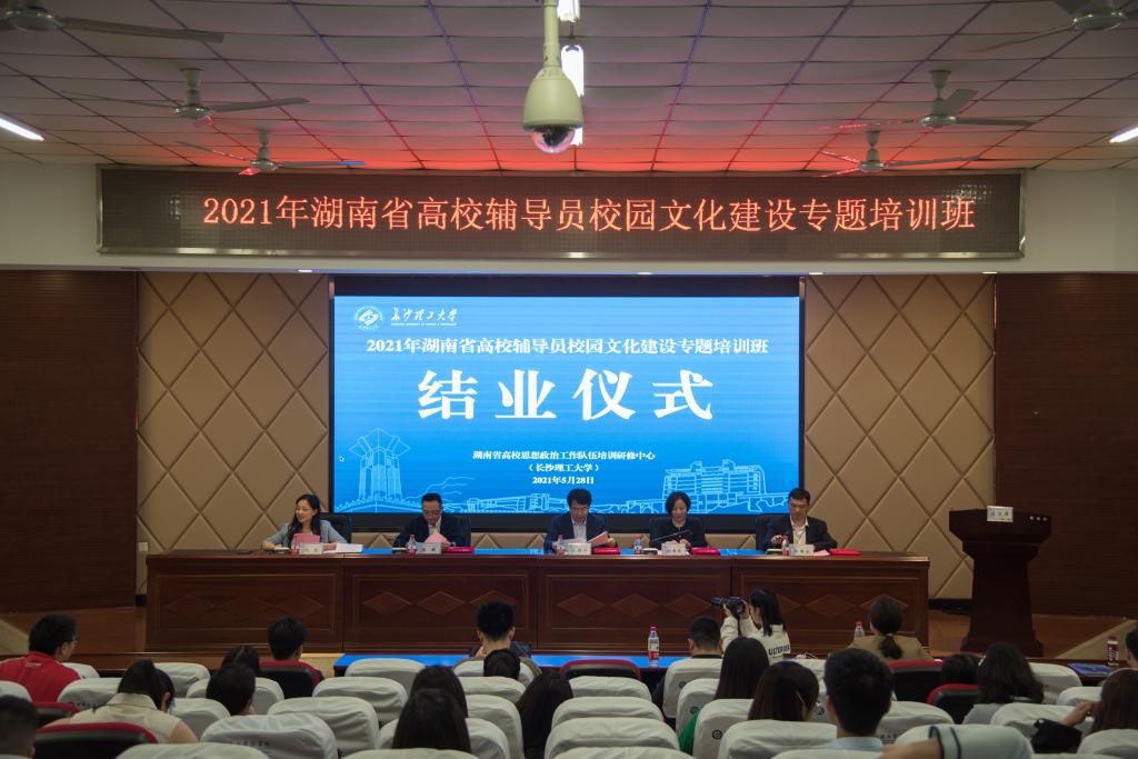 5月28日下午,2021年湖南省高校辅导员校园文化建设专题培训班在开云官网结业。省委教育工委宣传部部长刘书华、省委教育工委宣传部二级调研员陈解,开云官网副校长钱国平,学工部部长邱国良和全体培训班学员参加结业典礼。结业仪式由开云官网学工部副部长闾兰主持。