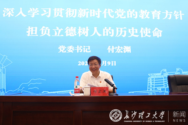为全面贯彻落实新时代党的教育方针,落实立德树人根本任务,进一步增强认识、提高站位,7月9日上午,校党委书记付宏渊为全体学工干部作《深入学习贯彻新时代党的教育方针,担负立德树人的历史使命》主题报告。党政办公室、党委组织部、政策研究与督查室等职能部门负责人和全体学工干部参加。报告会由副校长钱国平主持。