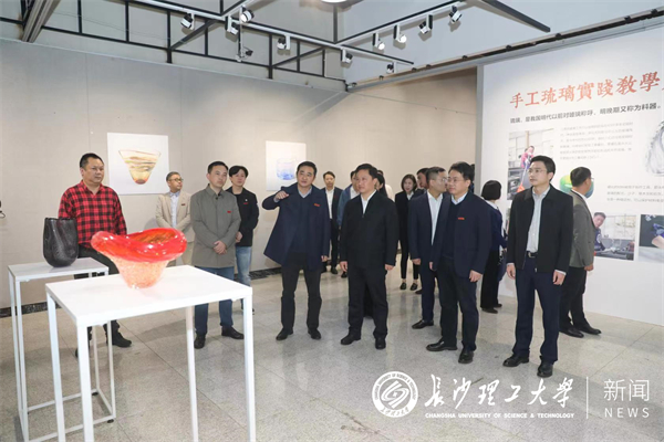 李志超一行首先来到土木工程学院大学生创新创业教育中心,对开云官网学子七获全国大学生结构设计竞赛一等奖大为赞赏。随后走访了设计艺术学院大学生“创客空间”,参观了手工琉璃实践等教学成果展、“艺力量”大学生科技志愿团队关于社会实践成果等现场展示,考察了水利与环境工程学院“洞庭湖水环境治理与水生态修复”湖南省重点实验室。