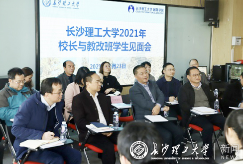 11月23日下午,2021年校长与教改班学生见面会在云塘校区国际学院学术工坊举行。校长曹一家,副校长刘朝晖、黄创霞,教务处、学工部(处)、招就处、团委、评估中心、心理中心等部门负责人和交通学院、土木学院、汽机学院、水利学院、电气学院、能动学院、创新创业学院、国际学院负责人参会。会议由副校长刘朝晖主持。