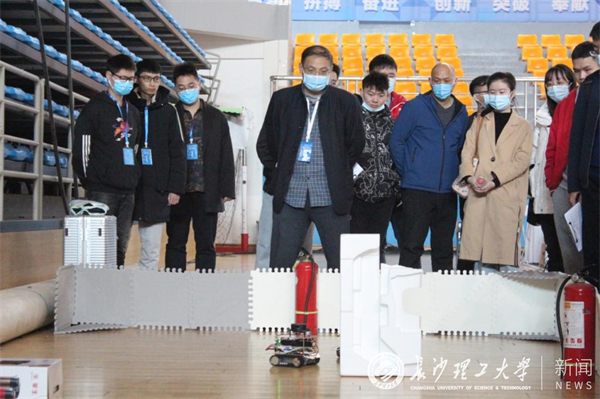 竞赛分为作品初评、现场展示、答辩评审三个环节。在作品展示现场,评审专家们观摩、测试作品,认真严谨地进行评审。同学们精彩的作品也吸引了老师和同学们驻足观看。开放式命题与设计的作品既有防疫新形势下的室外消毒、防疫智能巡检等类型机器人,也有服务湖南发展战略的各类科技成果,涉及人工智能、物联网、智能制造、无人机、工业机器人和大数据等多个前沿领域,涵盖了电路设计、系统集成和算法研究等不同设计层次。经过激烈角逐,大赛共评选出团体一等奖 11 项、二等奖 16 项、三等奖 27 项。