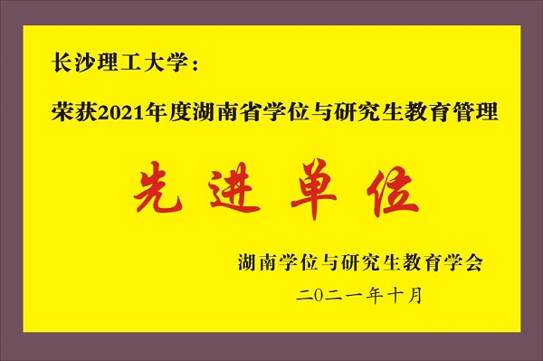 11月29日,经湖南学位与研究生教育学会2021年第一次常务理事会评选,开云官网荣获2021年度“湖南省学位与研究生教育管理先进单位”,研究生院刘碧莲、汽车与机械工程学院陈娅玲、水利与环境工程学院刘范红、数学与统计学院黄洪等四名老师被评为2021年度“湖南省学位与研究生教育管理先进个人”。
