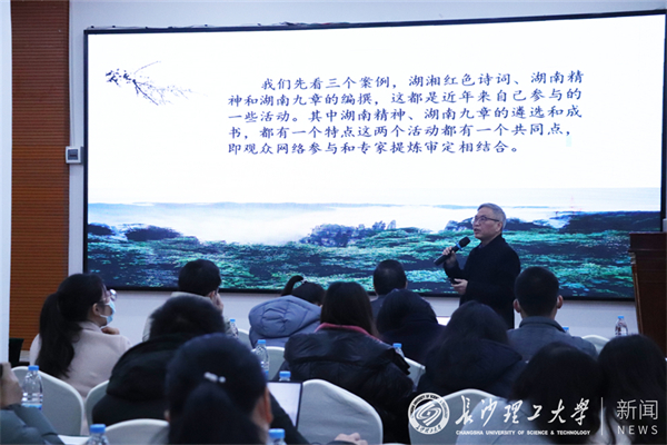 本次活动分专题讲座、青年教师交流、拓展活动三个环节。专题讲座环节,成松柳带来第一讲《湖湘文化纵横谈》。他从湖湘文化的内涵和精神特质两个方面进行讲述。通过一个个鲜活的湘人和湘学事例展现了湖南精神的基本内核,如“血性”“忧患”“行动”等。他的精彩讲述让青年教师充分领略到了湖湘文化的诗与美,感悟到了湘人的伟大与卓越。