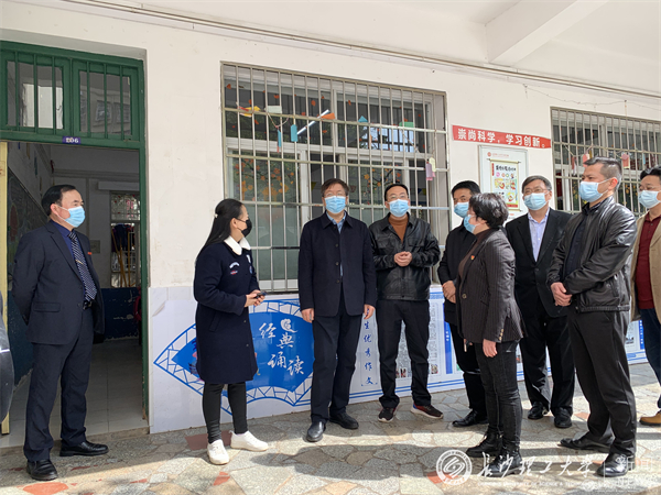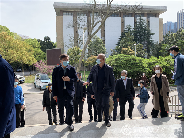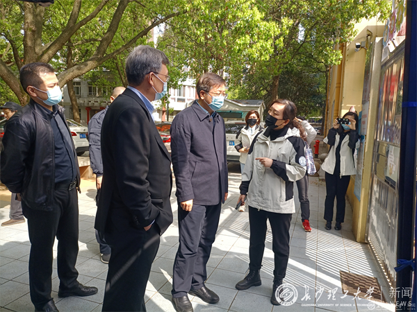 3月29日上午,校党委书记付宏渊,副校长谈传生,率领党政办、防控办、保卫处等相关部门负责人检查指导金盆岭校区疫情防控工作,看望慰问奋战在疫情防控一线的工作人员。