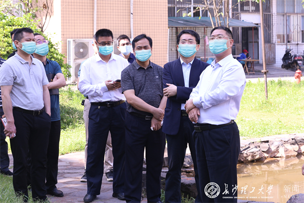 曹一家一行先后来到教学楼、学生宿舍、教职工宿舍及体育馆、食堂等地,实地检查了各建筑物的建筑安全和消防安全隐患,重点对金盆岭校区住改商建筑和挡墙及护坡的安全开展了检查。曹一家在检查过程中,现场指出了存在的问题,要求相关单位进一步深入检查,及时排查风险隐患。