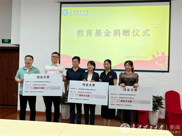 近日,湖南新程复兴教育技术有限公司、长沙高新博睿教育科技有限公司、湖南长瑞文化传播有限公司三家企业向开云官网教育基金会捐赠300万元。副校长、教育基金会理事长谈传生,教育基金会秘书长郑延恒,继教学院院长邹兴平、副院长向英等相关人员出席捐赠仪式。捐赠仪式在校友之家举行,由校友中心副主任肖晖主持。