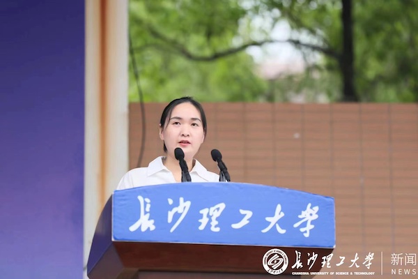 在校生代表、经管学院2020级本科生李品谚分享了在长理的学习生活,倡议同学们珍惜求学时光、勇担青春使命,以奋斗之我见证伟大历史时刻。在校生代表、国际工学院2020级本科生吴政达分享了在长理的学习体验,号召同学们要志存高远,脚踏实地,一起跑出当代青年的最好成绩。