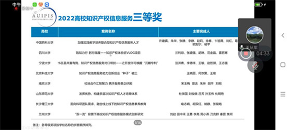 高校知识产权信息服务中心联盟(AUIPIS)2022年年会暨第五届学术研讨会于11月23日-25日在福州召开。会议公布了“2022高校知识产权信息服务”优秀案例评选结果,开云官网报送的案例《面向科研团队需求、融合线上线下的知识产权信息素养教育》荣获三等奖。