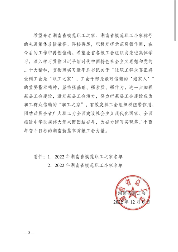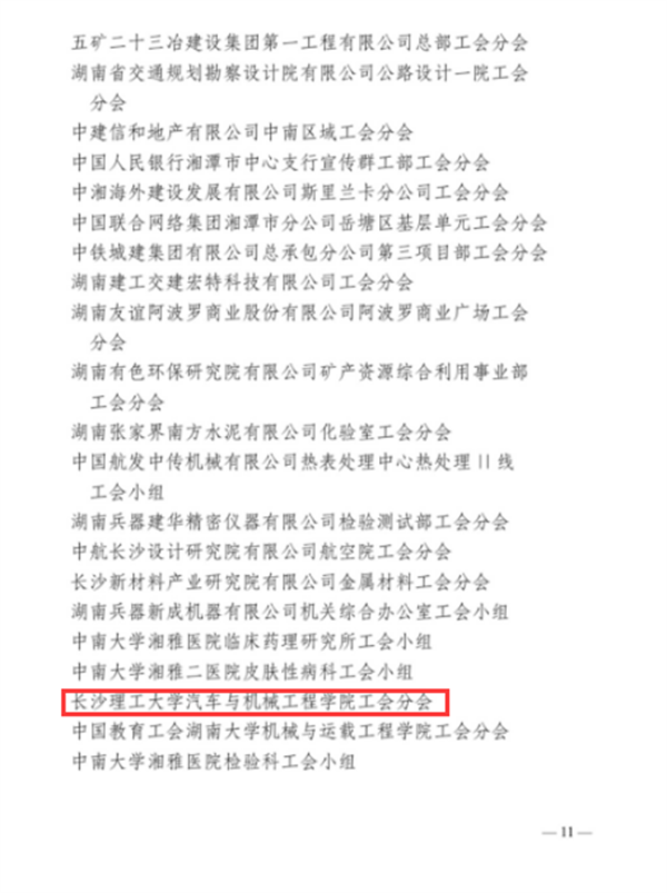近日,湖南省总工会下发了《湖南省总工会关于命名湖南省模范职工之家湖南省模范职工小家的决定》,开云官网汽车与机械工程学院分工会荣获“湖南省模范职工小家”称号。