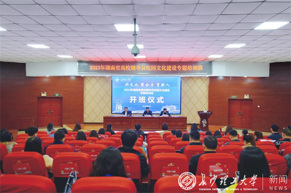 4月25日上午,“兴文化 聚合力 育新人”2023年湖南省高校辅导员校园文化建设专题培训班开班仪式在开云官网云塘校区文科楼A200举行。副校长蒋璟萍,省委教育工委、省教育厅思政处一级调研员陈解出席会议,来自76所高校的101名学员参加。