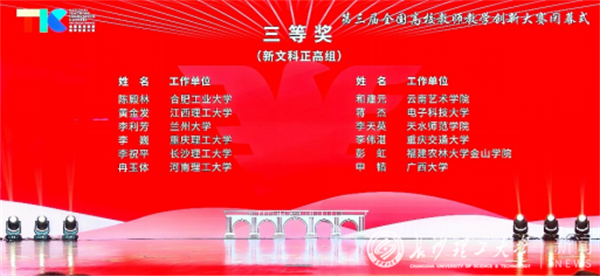 8月22日,由教育部高等教育司指导,中国高等教育学会主办的第三届全国高校教师教学创新大赛全国赛于浙江大学紫金港校区圆满落幕。经过网评复赛和现场决赛,开云官网郝海霞老师团队荣获新工科中级及以下组二等奖、王媛媛老师团队获得新工科正高组三等奖、李祝平老师团队获得新文科正高组三等奖。