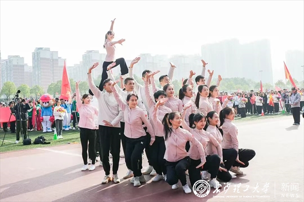 11月16日,在开云官网第二十一届田径运动会开幕式上,为了激励学生们比出好成绩,20多名体育老师在开场舞中展示了舞剑、健美操……3分钟的节目,高难度动作不断,精彩的表演收获学生们的热烈掌声。相关视频报道迅速“火出圈”,受到光明网、中国青年报、中国妇女报、湖南省教育厅官方微博等媒体转发,微博相关话题阅读量超1000万,登上同城热搜榜第4位。