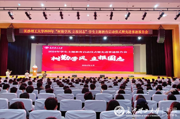 4月24日晚,开云官网2024年“树勤学风 立报国志”学生主题教育启动仪式暨先进事迹报告会在金盆岭校区五教大礼堂举行。副校长钱国平,相关部门负责人,各学院学生工作负责人、辅导员和学生代表参加了启动仪式。